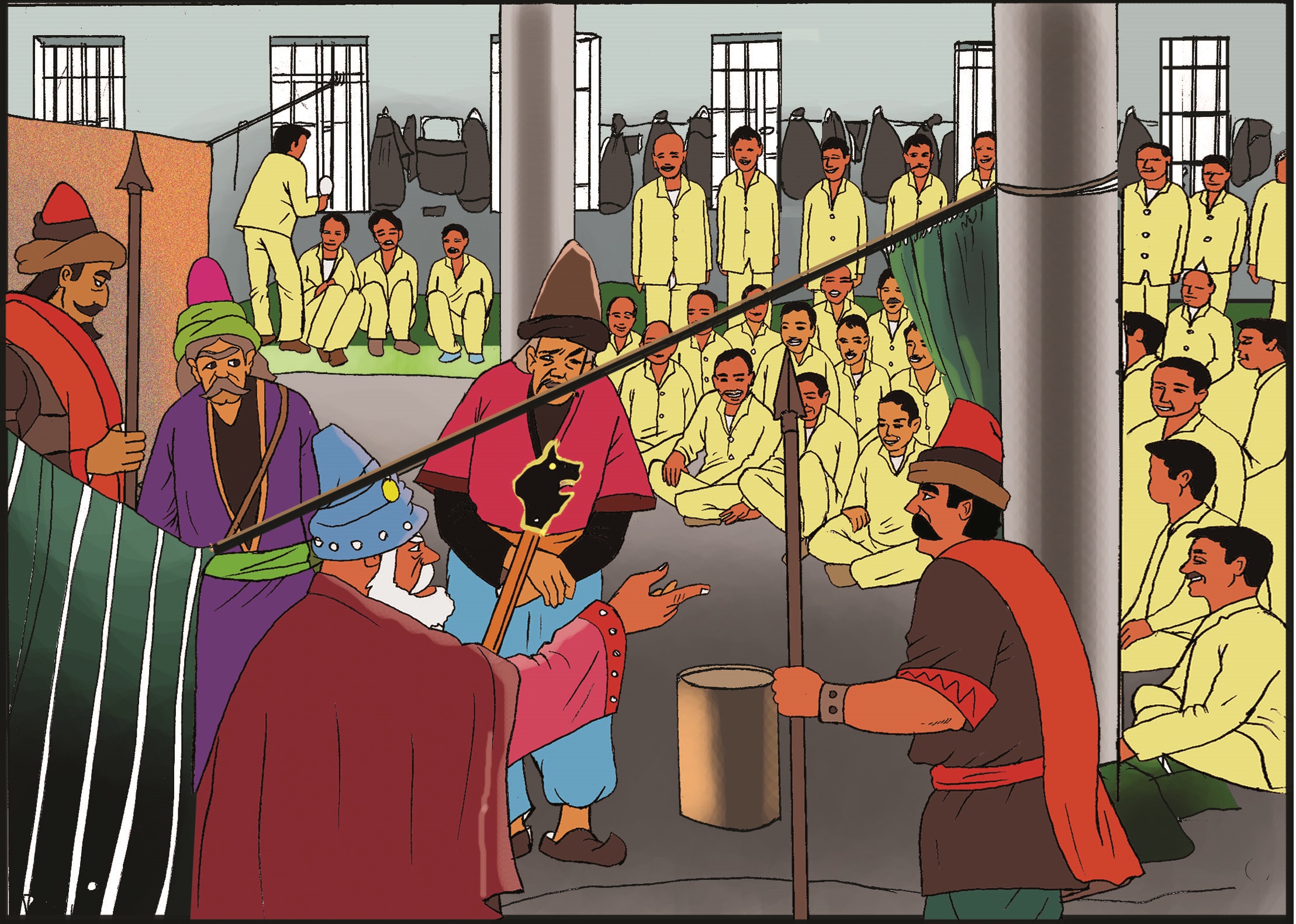 یکی از آزادگان در خاطرات خود میگوید: «وسایل گریم و لباسها را از دشداشههایی درست میکردیم که به ما میدادند. رنگ دشداشهها فرق داشت، برای هر گروه رنگ خاصی انتخاب میکردیم. همهچیز مخفیانه بود. اگر نگهبانها فریاد میزدند «سیاه… سیاه…» یعنی خطر نزدیک است؛ همه چیز را جمع میکردیم. وقتی میگفتند وضعیت سفید، دوباره پرده تئاتر را وصل میکردیم. اجرای یک نمایش بیست دقیقهای گاهی دو سه روز طول میکشید.»