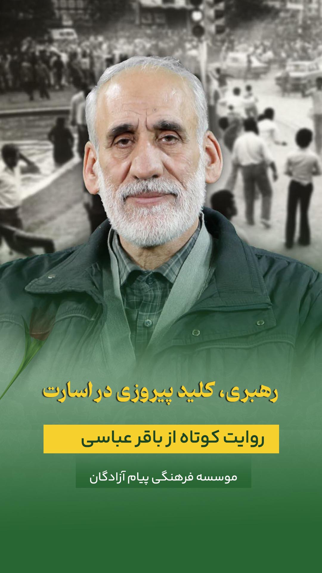 به گزارش روابطعمومی موسسه فرهنگیهنری پیام آزادگان، روایت پیشرو، روایتی کوتاه آزاده سرافراز باقر عباسی نقش رهبری و ایمان در خنثیسازی توطئههای منافقین در دوران اسارت میباشد. که در شرایط دشوار اسارت، نقش رهبری و اعتقادات قوی انقلابیون ایرانی به عنوان عاملی تعیینکننده، مانع از تحقق اهداف شوم منافقین در اردوگاههای عراق شد و با ایجاد یک همبستگی معنوی، روحیه مقاومت را در میان اسیران تقویت کرد.