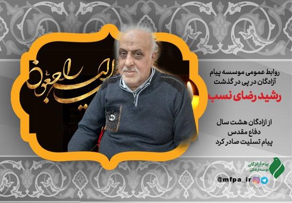 موسسه فرهنگی هنری پیام آزادگان در پی درگذشت آزاده سرافراز رشید رضای نسب پیام تسلیت صادر کرد.